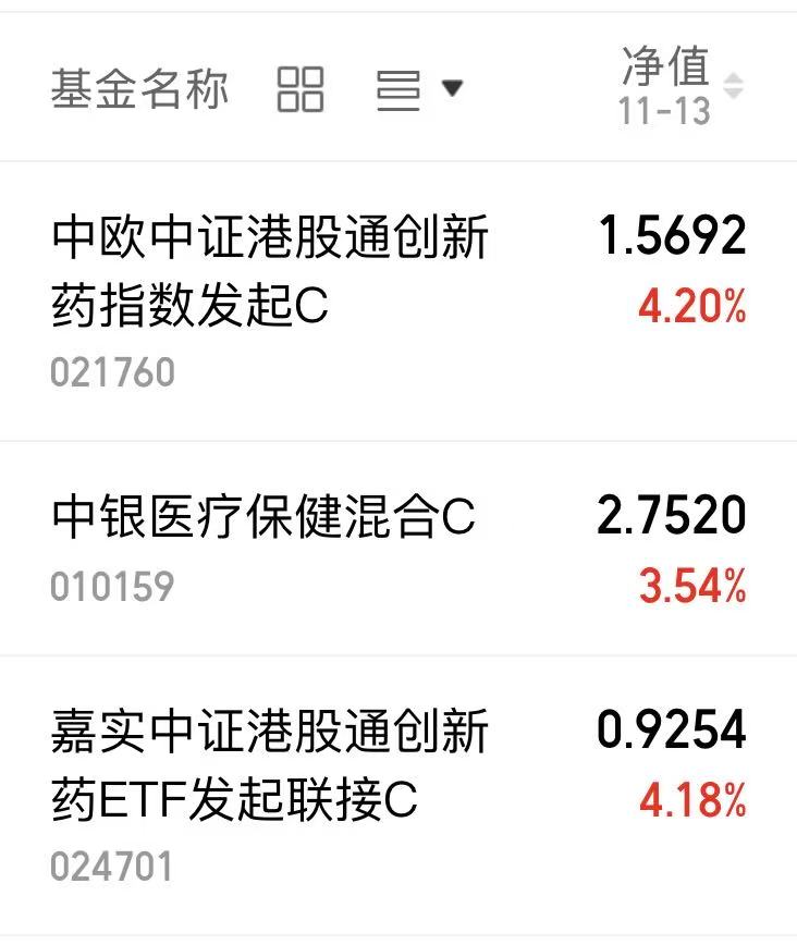 $中欧中证港股通创新药指数发起C(OTCFUND|021760)$今天上涨4.2%