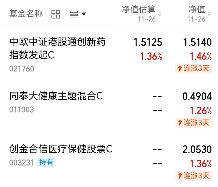 今天A股市场三大指数各有涨跌,创新药板块受政策利好预期带动,市场情绪回暖,延续反弹趋势,3连阳啦!一起看看今天净值更新表现: