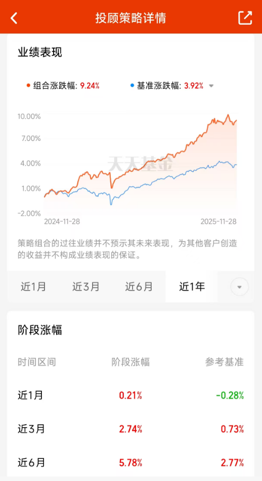 最近市场波动加大,不少偏债混合型产品都出现了明显回调。中欧多元全天候在这波行情中走得比较稳。它借鉴了桥水的全天候策略理念,通过美债和中债等固收资产打底,再加上股票、商品等多元化的全球配置 ,利用不同资产间的低相关性控制组合波动。近一年收益9.24%,最大回撤2.02%,波动率2.82%,整体表现更平稳。在天天基金APP的投顾管家页面,“三笔钱投顾”投顾板块里有详细介绍。当前市场估值环境下,这种通过配置结构降低波动的思路,或许更适合普通投资者。#观点搭子团火热招募中!#