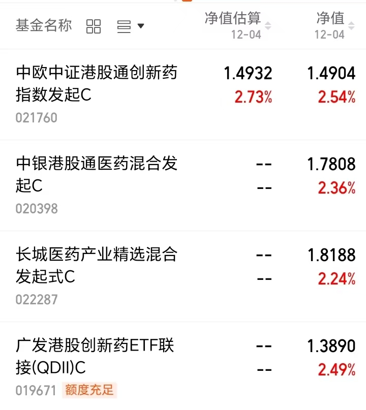 $广发港股创新药ETF联接(QDII)C(OTCFUND|019671)$今天上涨2.49%。