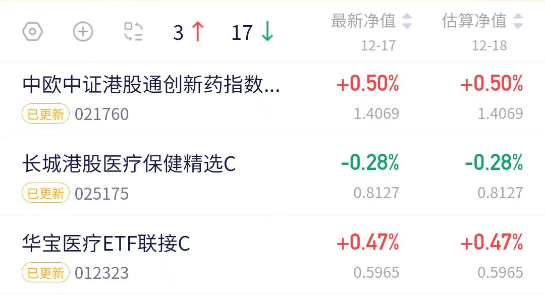 $长城港股医疗保健精选混合发起(QDII)C(OTCFUND|025175)$今天调整0.28%