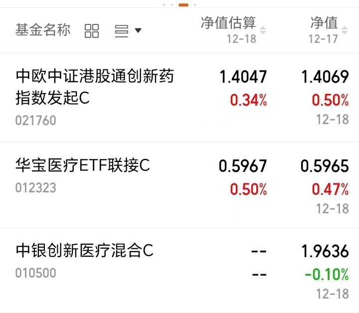 $中银创新医疗混合C(OTCFUND|010500)$今天回调0.10%。