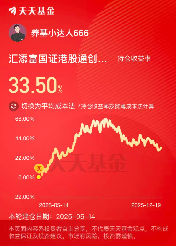 医药人集合啦!这几天港股创新药雄起,行情回暖牛回速归啊,我持有的$汇添富国证港股通创新药ETF发起式联接C(OTCFUND|021031)$本周连涨三天,相当给力,只基金是创新药超额黑马,近一年+60.24%,远超同类平均排名靠前,而且是纯度很高的港股创新药指数,持仓集中度高,成分股包括荣昌生物、先声药业、康方生物、科伦博泰生物、恒瑞医药等港股创新药龙头,更具有成长性和爆发力,经过较长时间的调整,现在估值回落补涨空间打开,投资性价比突出。