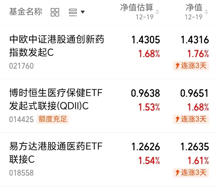 $易方达港股通医药ETF联接C(OTCFUND|018558)$今天上涨1.61%。