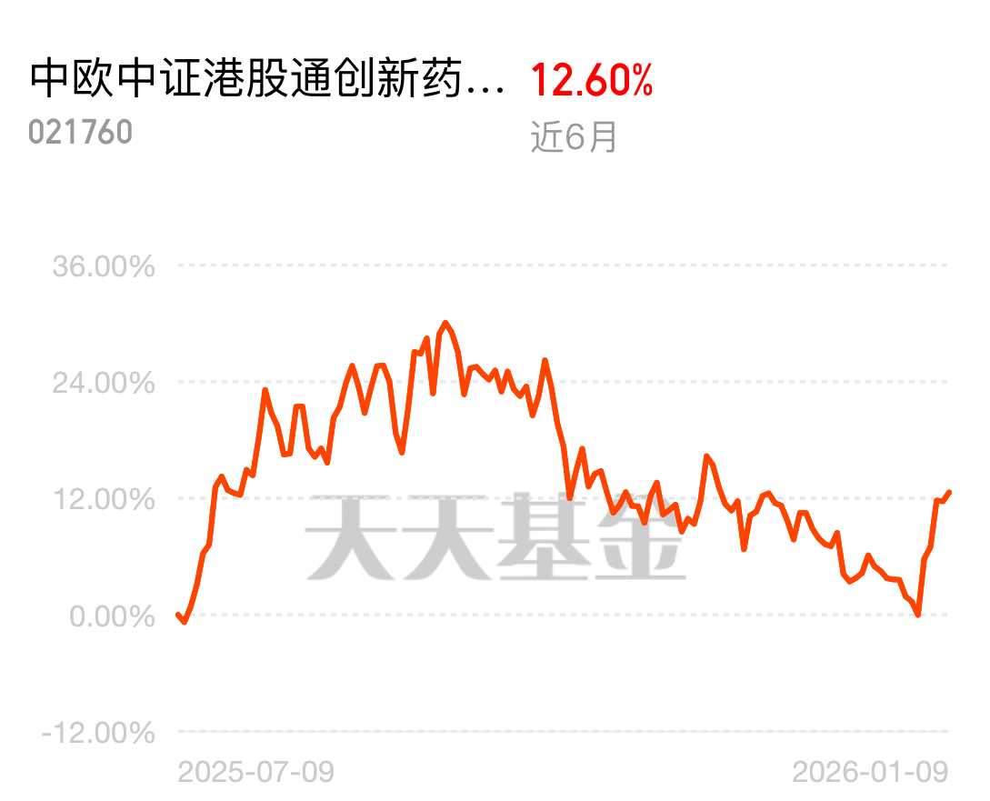 科技股行情起起落落,不少股票涨得快跌得也快,追高容易被套。创新药当前估值更吸引人,中欧中证港股通创新药指数发起 C 近 6 月 12.60%,重仓药明生物等优质标的,集中布局让收益更稳健。$中欧中证港股通创新药指数发起C$