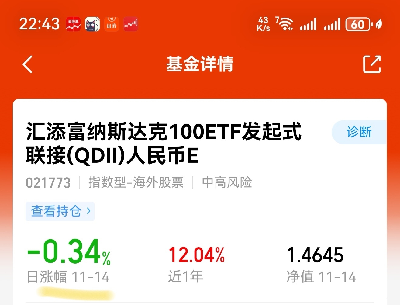 反观这个拉基美股纳斯达克100指数qdll基金,在今天晚上更新上周五那天的实际表现,竟然还有脸跌- 0.34%。