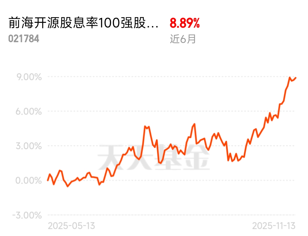 在低利率时代,红利资产凭借“高股息、低波动”的核心特质,早已成为普通人资产配置的“压舱石”。如今A股红利的稳扎稳打与港股红利的估值优势形成鲜明对比,不少投资者陷入选择困境。而我经过长期观察与实践,更倾向通过前海开源股息率100强股票C(000916)布局,既不割裂两类红利资产的优势,又能在专业管理下把握确定性收益,这背后是对红利资产价值的深刻认知与赛道特性的理性判断。