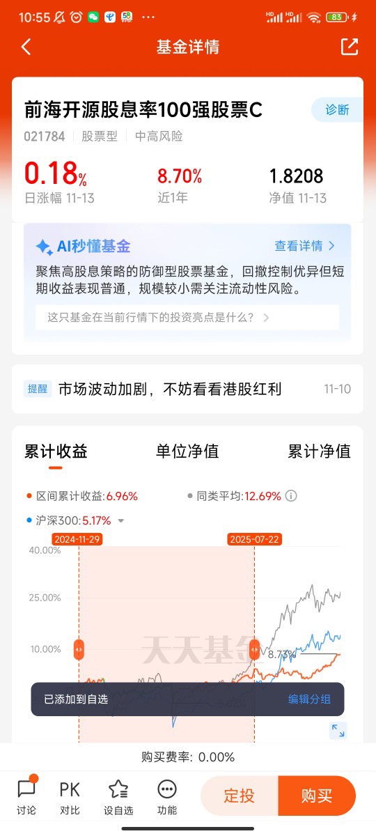作为C类份额,它的费率优势也契合普通投资者的需求:无申购费,持有满7天免赎回费,适合用闲钱分批定投,既能摊薄成本,又能在资金急需时灵活赎回,不影响日常资金周转。对我而言,这种“专业筛选+双市场覆盖+低费率”的模式,完美解决了普通人投资红利资产的痛点——无需纠结单一市场的优劣,无需研究复杂的税收规则,只需交给专业团队管理,就能一键拥抱两类红利资产的核心价值。