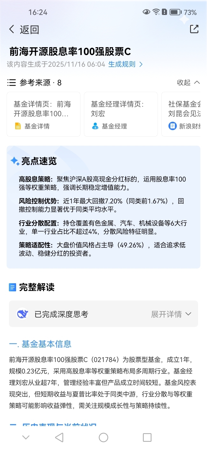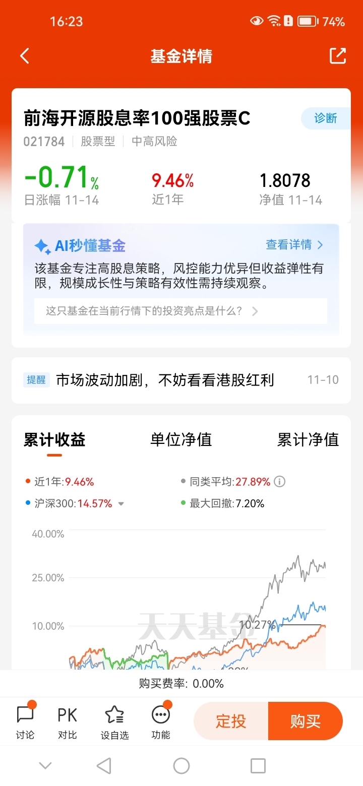 我pick$前海开源股息率100强股票C$,我看好红利,红利对我来说最重要的优势是可以把握优质高股息资产长期机遇,我的配置思路就是长线布局。