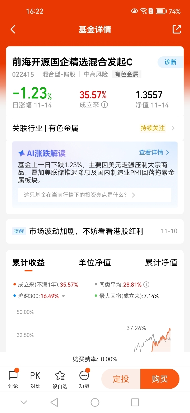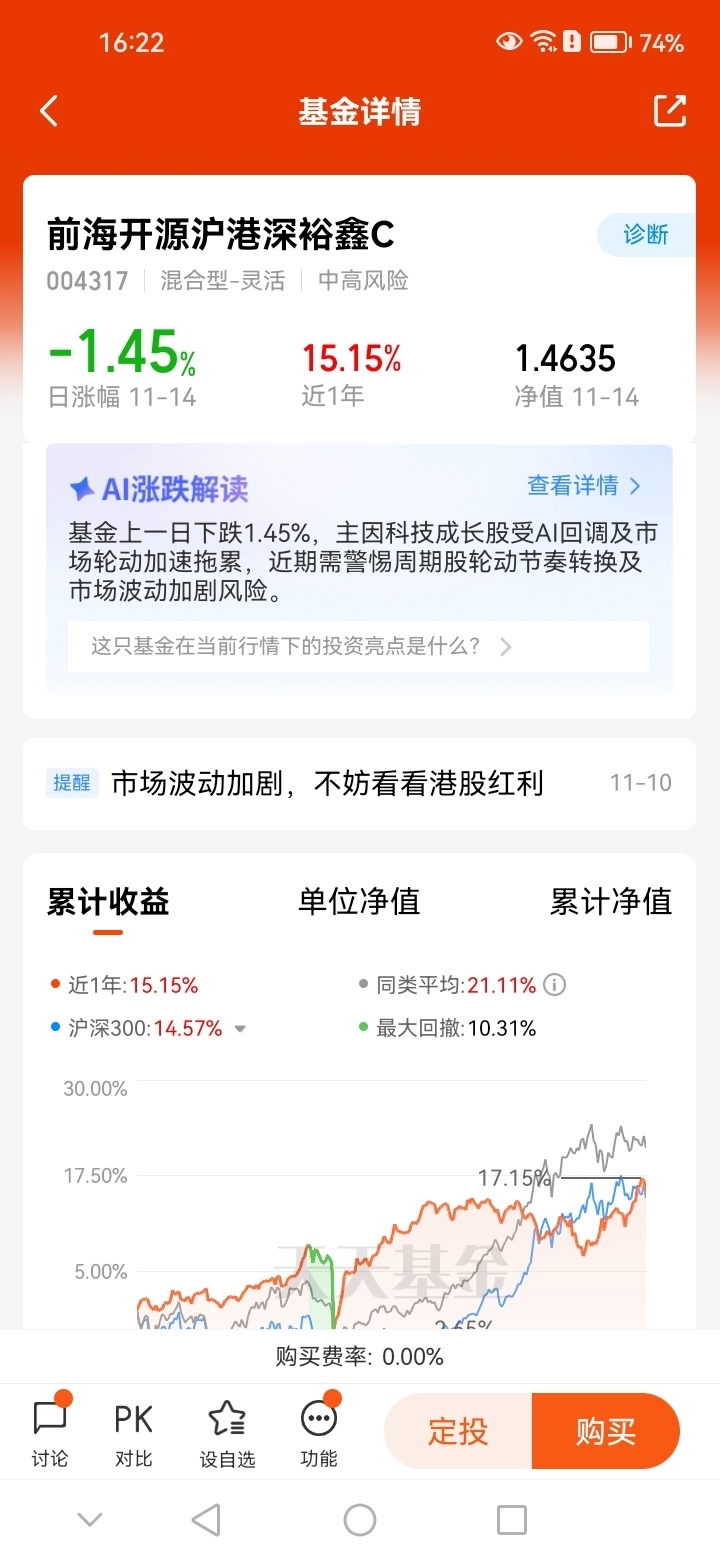 震荡行情要注意投资组合优化,适当配置红利基$前海开源股息率100强股票C$ 挺好的。