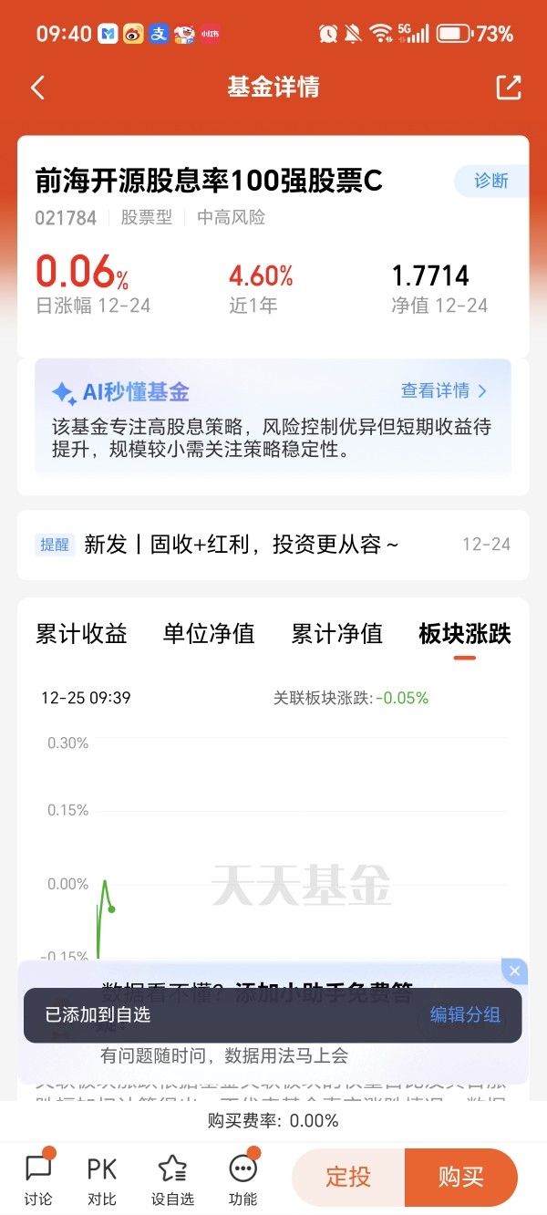 #前海开源红利家族# 果断把前海开源股息率100强股票C 加自选!