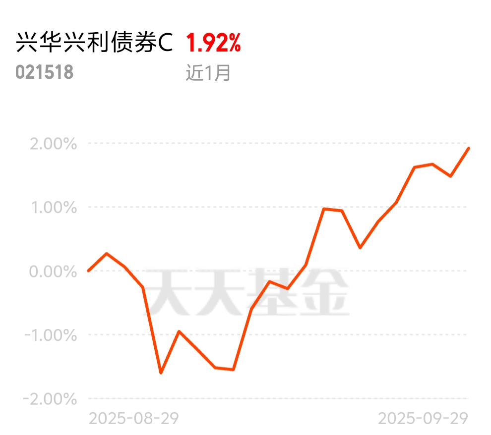 昨天兴利逆势收蛋43个!我希望理财能有稳定收益,同时也不想错过市场机会。兴利二级债基债券打底提供稳健收益,权益部分能在市场反弹时发力,近一个月涨幅在同类里排第 42 名,这样的表现满足了我的需求。$兴华兴利债券C$