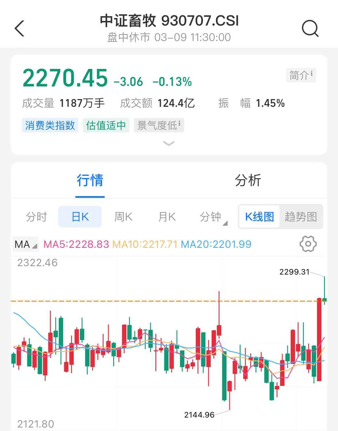 兄弟们,猪肉应该是站起来了,周五的时候。树木大涨了4%,今天上证出现了回落。三大指数全线收率,但是我的$招商中证畜牧养殖ETF联接C$ 却仍然稳住了节奏,目前农产品正在从等待传导已经转向到成本推动加避险配置的双重驱动阶段,我觉得后续还是有很大的机会。