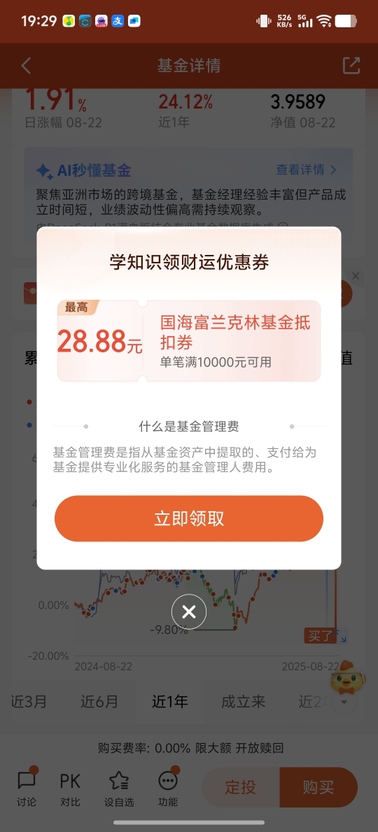 看来最近A股牛市,美股买的人少了,又来一张10000-28.8元的券,那就继续用了,把其他纳指基金卖掉一万。