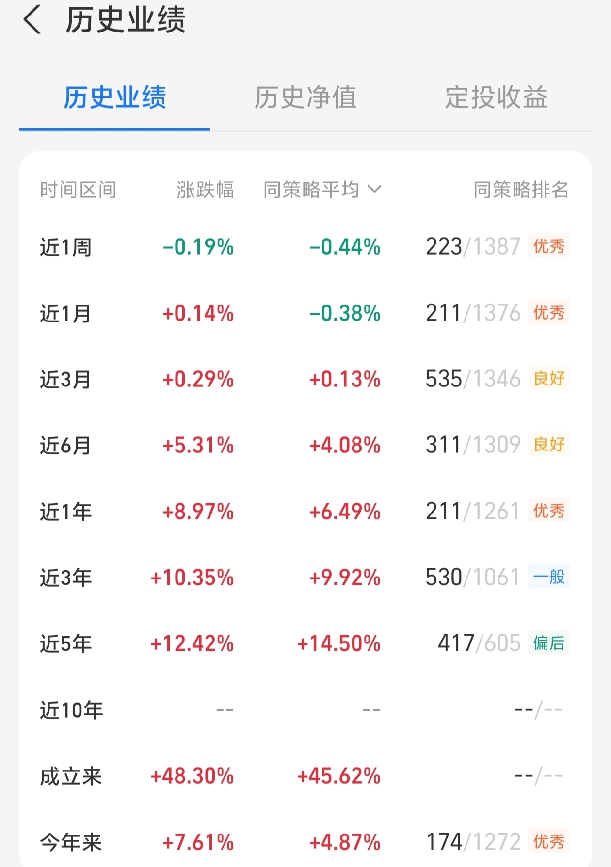 果然啊,人还是不能太贪心,所以我始终觉得,辛辛苦苦赚的钱就得打理好,投资不是为了赚快钱,而是稳定盈利,上周市场普跌,正好考验基金的抗跌性!我一直留意的$泓德裕康债券C$ 果然没让我失望,只碎了57个蛋,表现相当坚挺。再一查,月月正收益,今年以来收益7.61%,回撤才1.51%,这数据在“固收+”里很能打了。结构是高股息打底,搭配点AI芯片(寒武纪),稳中带攻。年底就捂好它了。既能稳守债市收益,又能借权益增强弹性,不贪快、只求稳了