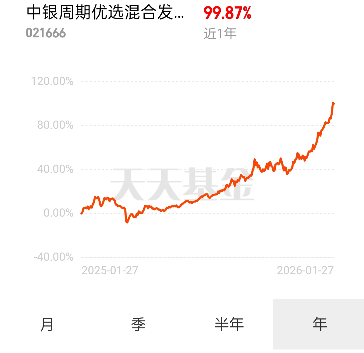 现货黄金突破5200美元/盎司,伦敦银冲到110美元以上,这波贵金属涨得太猛了。白银持续短缺,有色金属供需缺口大,价格上涨逻辑硬。$中银周期优选混合发起C$(021666) 涵盖这些稀缺品种,近一年翻倍涨幅。高盛看涨黄金,有色金属有比价效应加持,涨幅可能更超预期,长期拿着就行#暖阳创作计划#