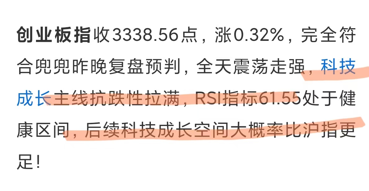 创业板指收3367.92点,逆势上涨0.56%,探底回升收出小阳线,兜兜昨天刚说创业板空间比沪指更足,今天就精准验证!指数稳稳站上5/10/20日均线,均线多头排列态势完好,5分钟级别走出“W底”形态,尾盘成功突破颈线3360点,短周期反弹动能充足!日线层面虽缩量上涨,MACD红柱持平、KDJ高位钝化(J值超80)、RSI(14)达68,上冲动能仍在但超买风险累积,后续需放量突破0.9万亿成交额,才能打开上行空间!