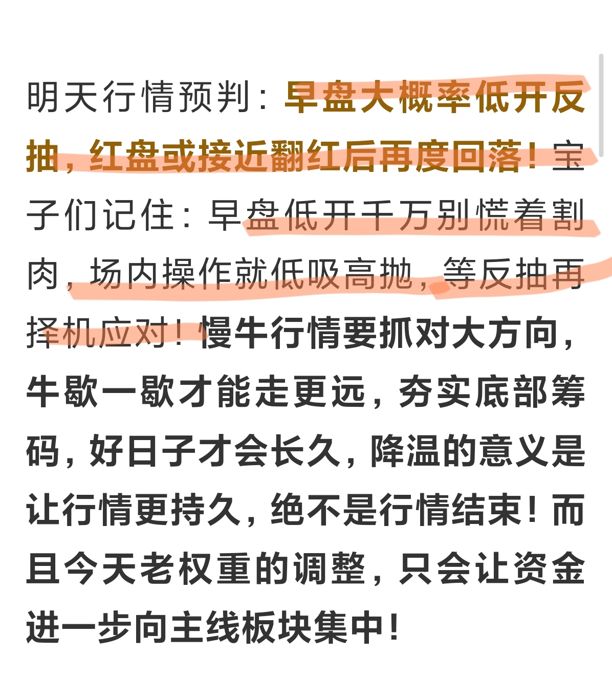 兜兜昨晚精准预判大盘走势:大概率低开反抽,红盘或接近翻红后再度回落!还特意提醒大家,场内低开别急着割肉,等反抽再择机应对,跟上节奏的宝子都成功避坑!