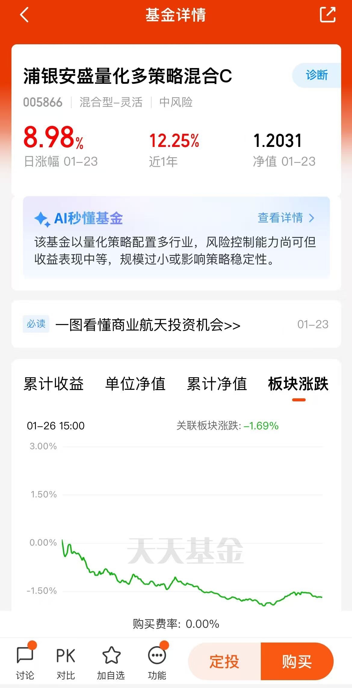 浦银安盛量化多策略规模小好把握,聚焦太空光伏,商业航天黑马涨近9%,调整就是机会$浦银安盛量化多策略混合C$