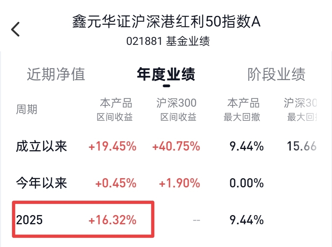 沪深港红利50全收益2025年的涨幅22.57%,但是鑫元基金2025年的涨幅只有16.32%,为什么会有这么大的偏差?具体原因是什么?