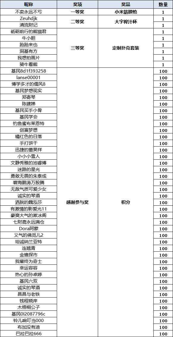 大家好,本次活动圆满结束啦,感谢大家对鑫元基金财富号及产品的关注!中奖名单新鲜出炉,恭喜以下中奖伙伴!
