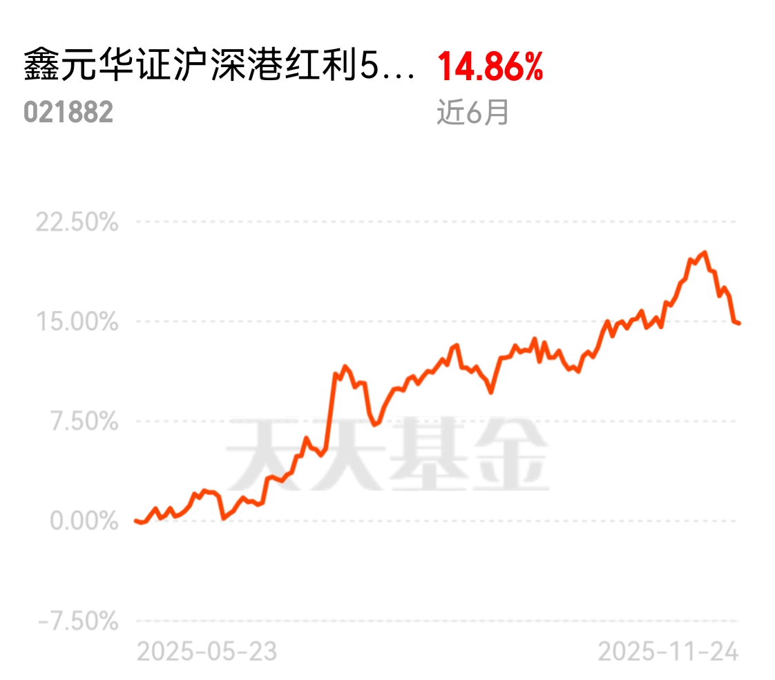 红利赛道的宝藏!$鑫元华证沪深港红利50指数C$ 近半年涨14.86%,高股息+低波动,抗跌又能赚~