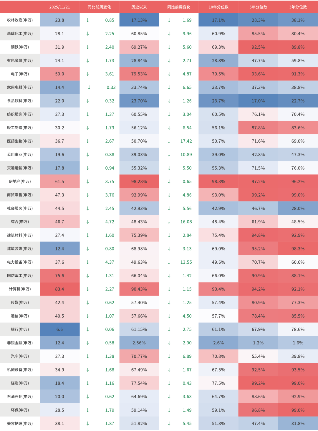 表2:上周A股市场申万一级行业PE(TTM)