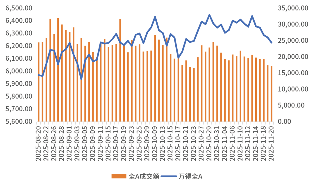 10月底的美联储会议纪要显示许多参会者认为下次会议应该维持利率不变,少数参与者认为应该再次降息25个基点(9月非农数据反馈的也是分化走势);纪要强调若要再次降息,数据需进一步验证劳动力市场的担忧。另外由于10月失业率和非农数据等部分重要数据的缺失,且11月非农就业数据(12月16日公布)将在美联储议息会议(12月9日-10日)之后公布,市场开始认为12月不降息的概率增加。海外流动性偏弱是导致最近海外下跌的主要原因。我们认为在目前的数据下,美国的就业市场软而未崩,美联储目前看并没有落后于曲线。12月降不降息不是最重要的;最重要的是市场需要FED表态现在讨论降息终止为时过早,未来还是会降息的。英伟达的财报超预期,但边际效用递减;AI的景气还是要靠新的故事、新的逻辑和新的主角。权益策略建议:1、仓位:维持中性仓位。1)前期高波动的行业需要有一个均值回归的过程,预计仍会调整。策略上,市场需要一定时间的震荡整理,以消化今年以来的上涨。2)市场波动性短期集中释放后,将进入一个相对缓释的过程。出现类似上周五脉冲式加速下行的概率有限。3)AI方向缺乏新的叙事逻辑,在分母不宽的背景下,估值需要有一个下修的过程。2、配置策略:哑铃策略。3、行业选择:1)上周提到“市场的热点继续缩圈,以储能放量驱动新能源上游和中游价格上涨,是主要交易区域,短期已加速至后段”。相关区域完成最后的上冲之后,出现剧烈调整。短期不建议参与。2)短期可配置的方向仍是:金融、工业金属、电力、煤炭等大市值红利类品种,以获取一定的相对收益。3)黄金维持4000美元中枢震荡。