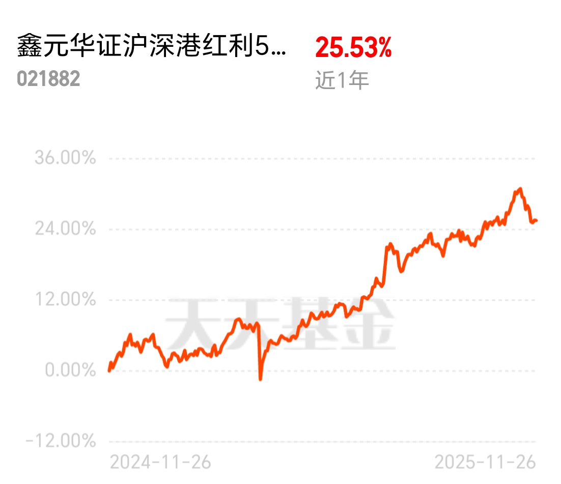 鑫元华证沪深港红利50指数C近一年25.53%的收益直接封神!覆盖沪深港50只高