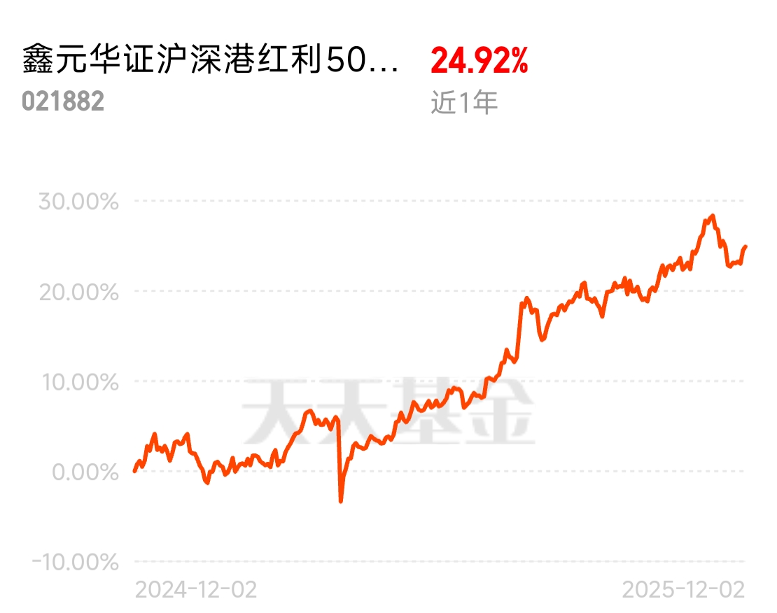 $鑫元华证沪深港红利50指数C$ ,近一年收益25%,三地布局超安心!