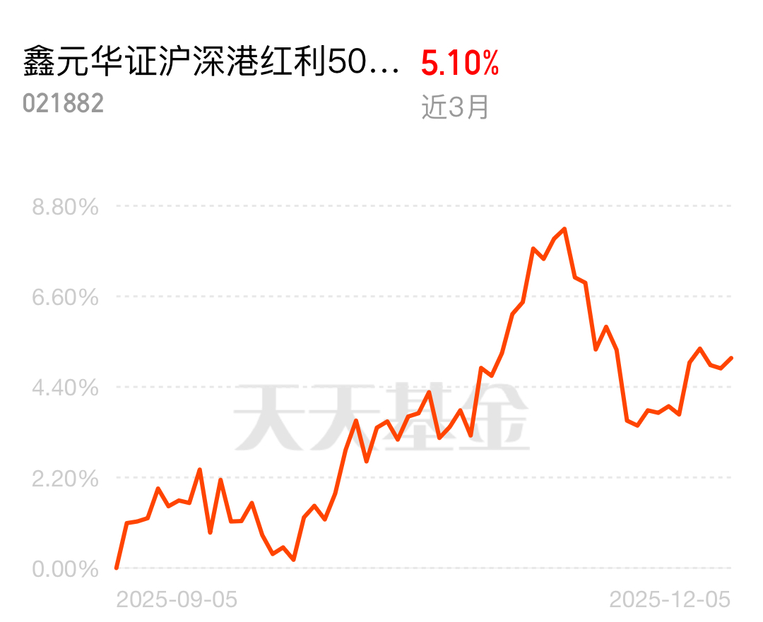 $鑫元华证沪深港红利50指数C$近3个月涨5.10%,红利板块慢涨也能攒下不少收