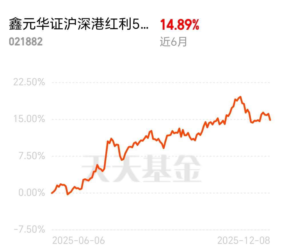 当前市场震荡下,高股息资产性价比凸显,$鑫元华证沪深港红利50指数C$ 近6月涨14.89%,重仓龙头+低波动,适合稳健型配置。