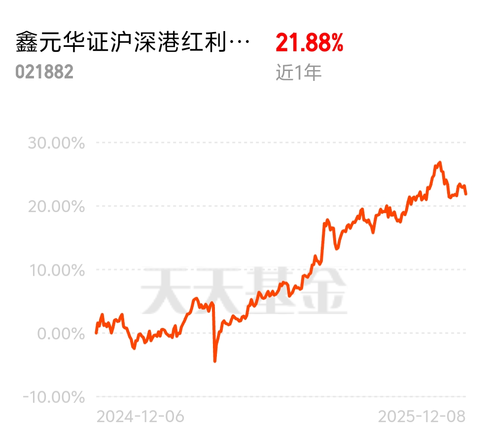 想找个能扛住震荡的长期理财?$鑫元华证沪深港红利50指数C$近一年涨21.88%