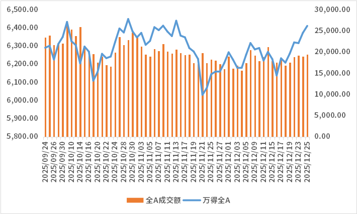 权益市场方面,一、美元承受贬值压力,表明对于特朗普政府遵守财政纪律的不信任,以及即便财政宽松也难以实现真实的经济增长。但26年美国财政大概率是宽松的,这一逻辑已经开始抢跑了,本周大宗商品资产开始进入主升。因圣诞节假期,海外处于经济数据空窗期,无重要数据公布。国内出口维持强势,外需依旧不弱,总体经济向好。二、下周权益策略建议1、仓位:维持中性仓位。1)市场流动性和整体风偏水平,维持中性状态。结构性方向比整体仓位更为重要。2)美国软着陆预期下的财政宽松逻辑开始抢跑,重启再通胀预期。3)外需主导的结构性分子景气是目前的主要交易逻辑,体现为海外算力的个股阿尔法机会和有色金属的贝塔性机会。2、行业选择:1)弹性交易方向:商业航天+锂电中游材料+免税封关+海外谷歌链。需要有对短期波动率加大的容忍度,不要追涨杀跌,更应反向操作。2)行业配置:建议关注:有色金属、基础化工、非银金融、国防军工、石油石化;建议谨慎:综合、计算机、医药、传媒、电力及公用事业。