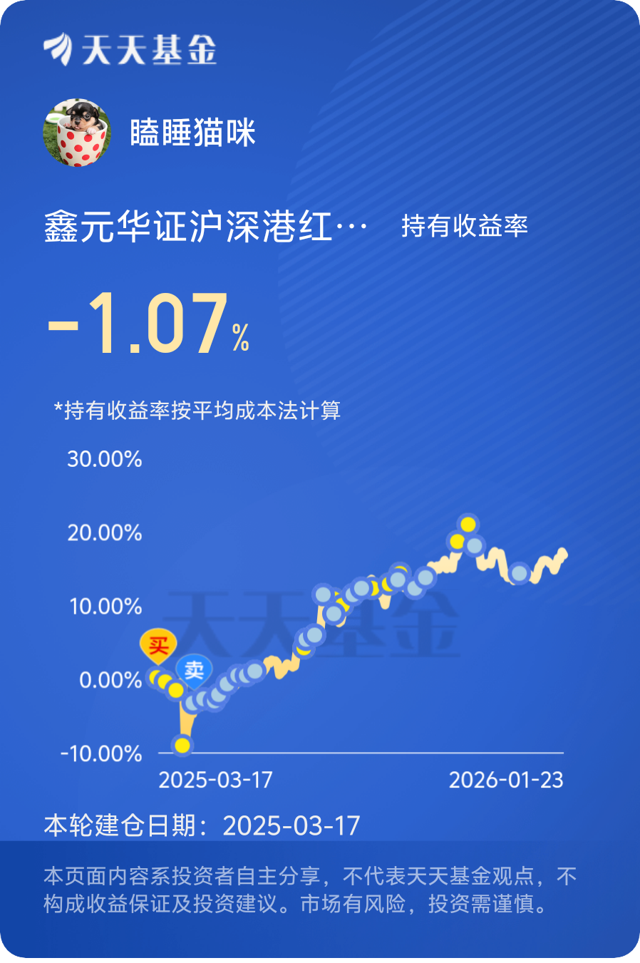 一直比较喜欢红利,这一款红利指数是含港股的,算是红利里面的一个差异化,分散一下风险。虽然暂时亏钱,但是长期还是看好的,坚定持有。