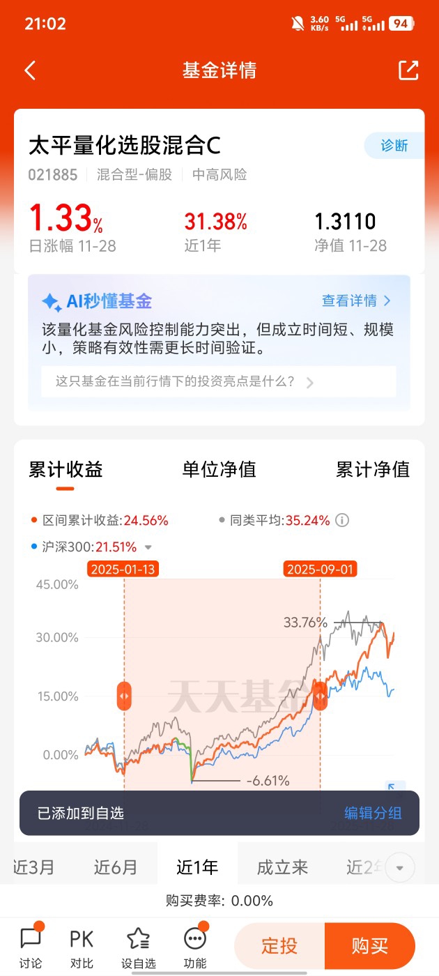 $太平量化选股混合C$ #大盘高位震荡如何投资# #青禾创作计划# #晒实盘# @太平基金 @天天基金创作者中心