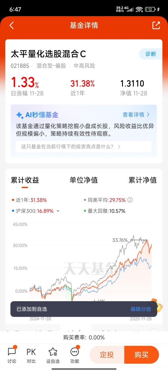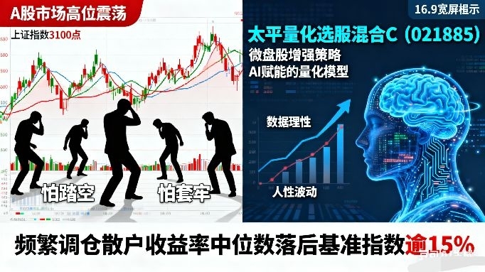 近期A股高位震荡,上证指数在3100点反复拉锯,许多投资者在“怕踏空”与“怕套牢”间焦虑摇摆。频繁交易如海浪淘沙,反而侵蚀着收益的土壤——数据表明,今年频繁调仓的散户收益率中位数落后基准指数逾15% 。而在这样的市场中,太平量化选股混合C(021885)以其独特的微盘股增强策略和AI赋能的量化模型,成为震荡市的一抹亮色。今天,我们就来聊聊这只基金如何用“数据理性”对抗“人性波动”。