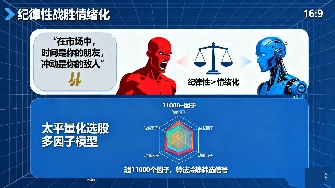 1. 纪律性战胜情绪化市场波动时,投资者容易受恐慌或贪婪驱使,而量化模型严格执行策略,避免“追涨杀跌”。正如华尔街名言:“在市场中,时间是你的朋友,冲动是你的敌人。”太平量化选股的多因子模型涵盖超11000个因子,通过算法冷静筛选信号,不受短期噪音干扰 。