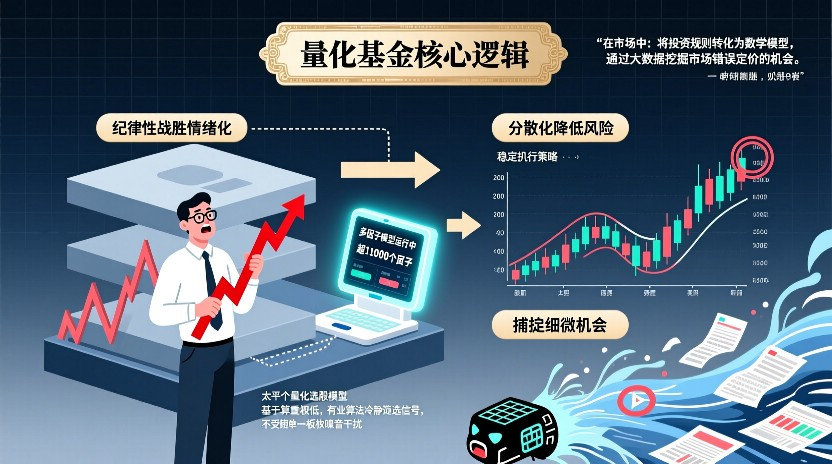 量化基金的本质,是将投资规则转化为数学模型,通过大数据挖掘市场错误定价的机会。与传统主观投资相比,其优势在震荡市中尤为凸显: