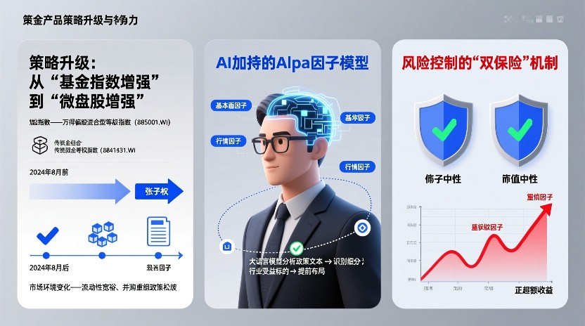 - 策略升级:从“基金指数增强”到“微盘股增强”产品最初对标万得偏股混合型基金指数(885001.WI),但今年8月后转向万得微盘股日频等权指数(8841431.WI)。这一调整源于市场环境变化——微盘股在当前流动性宽裕、并购重组政策松绑的背景下,更易获得“四重期权”收益(资产注入、壳资源、资金博弈、产业转型) 。