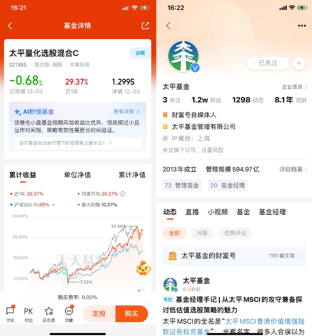 最后不得不说太平基金的实力,作为老牌基金公司,它的投研团队和风控体系都很成熟。主动量化基金最考验投研实力,需要大量的数据支持和模型迭代,太平基金能支撑起这样的策略,背后肯定有强大的投研团队在保驾护航。而且从基金经理的任职稳定性、产品的策略调整效率来看,公司的管理也很规范,不会出现乱调仓、乱换策略的情况。对咱们投资者来说,选基金除了看业绩和策略,基金公司的实力也很重要,毕竟靠谱的平台才能让基金长期稳健运作,不用担惊受怕踩雷。