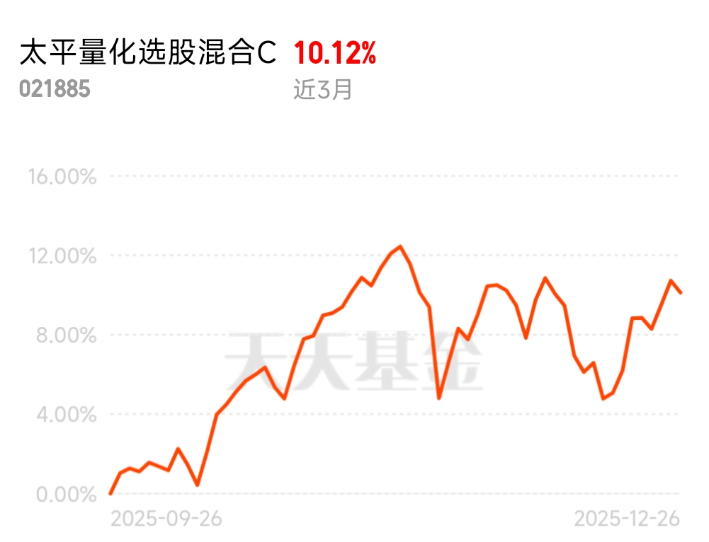 这段投资经历让我深刻明白:在大盘高位震荡的行情里,普通投资者与其自己在市场里“摸爬滚打”,不如借助量化基金的力量。太平量化选股混合C用数据驱动的选股策略,帮我避开了追涨杀跌的陷阱,也让我在震荡市中赚到了稳稳的收益。它就像我的投资“压舱石”,不管市场怎么波动,都能让我安心持有,不用再为短期的涨跌而焦虑。