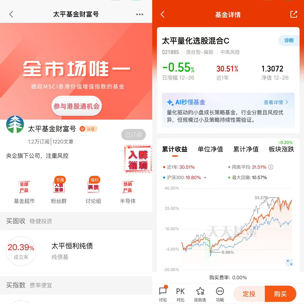 太平量化选股混合A(代码:021884)成立于2024年10月29日 ,采用Wind偏股混合型基金指数增强策略,以中证全指指数收益率90%+银行活期存款利率(税后)10%作为业绩比较基准。