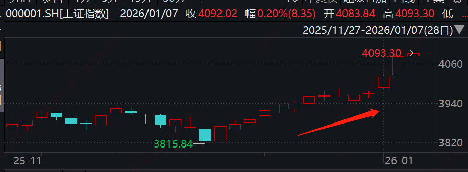 元旦前后这轮行情有点猝不及防,大A马上要收第13根阳线,强势收复4000点。