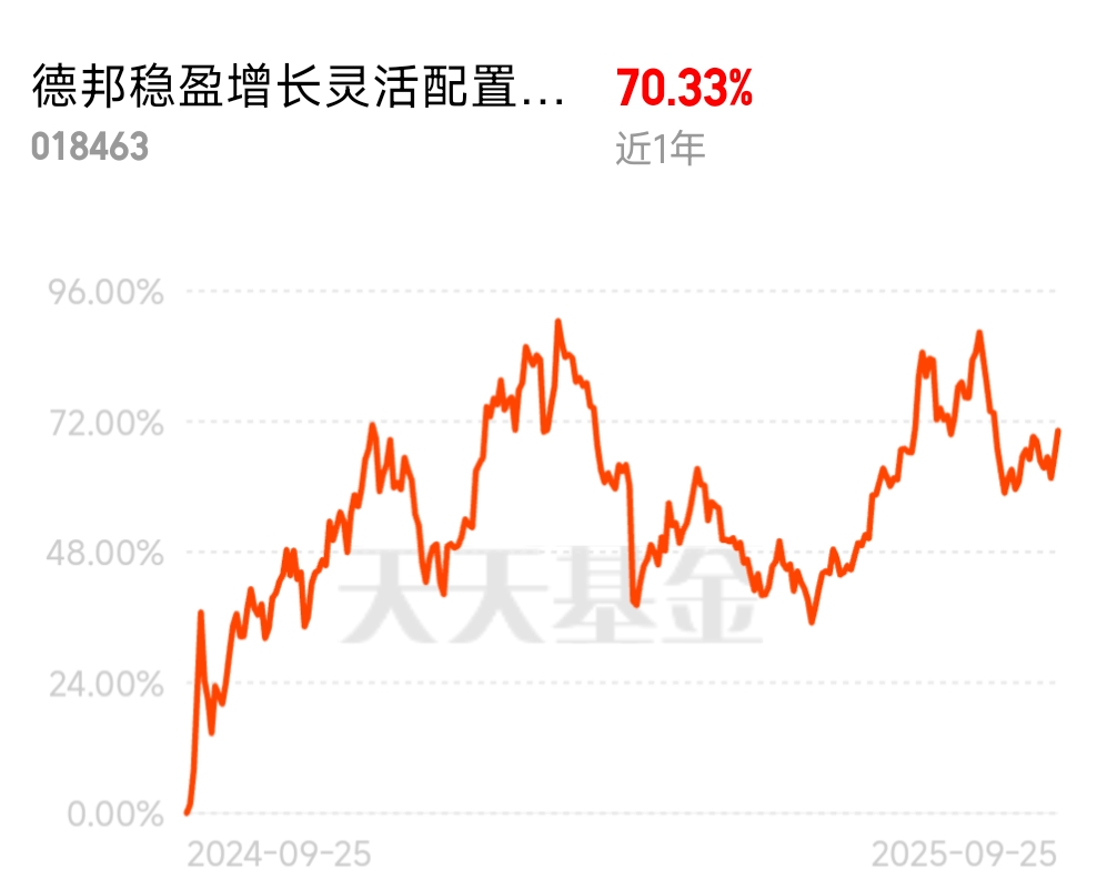 市场里灵活配置基金中,稳健风格表现亮眼,德邦稳盈增长灵活配置混合C近1年70.3