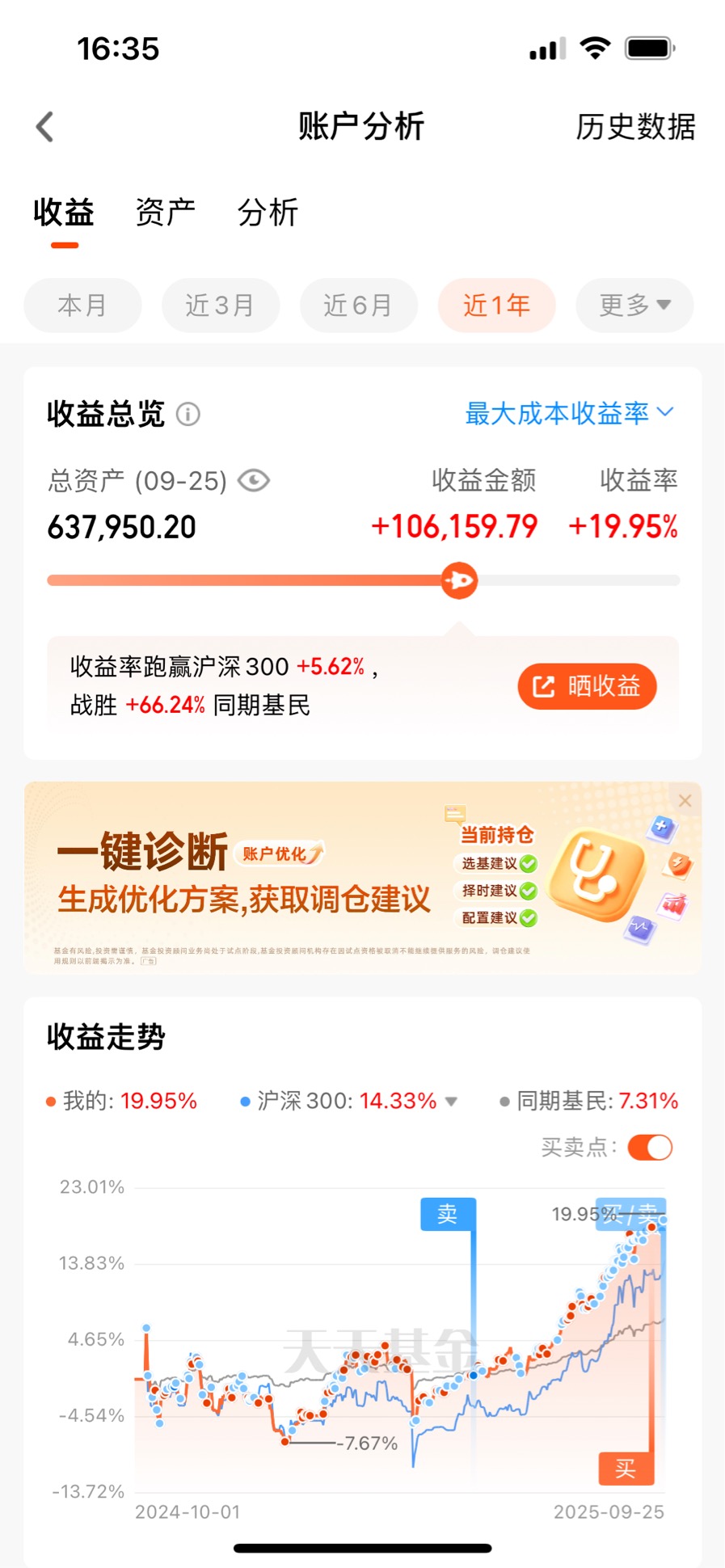 #分享国庆见闻,晒收益,瓜分好礼!# #热点话茬# 我是科技派,我特别看好这条科技主线。我的国庆旅行目的地是上海!下面我来说说我的投资前三季度“成绩单”与四季度收官规划:前三季度投资成绩单还不错哦!近一年总收益超10万,收益率19.95%,跑赢沪深300指数5.62%,还战胜了66.24%的同期基民。最后一季度,打算先看看市场趋势,保持现有优质持仓,再根据一键诊断的调仓建议,适当优化配置,争取稳稳收官,把收益再往上提一提。尤其重点关注科技板块。感兴趣的小伙伴可以选择易方达基金公司旗下的产品!