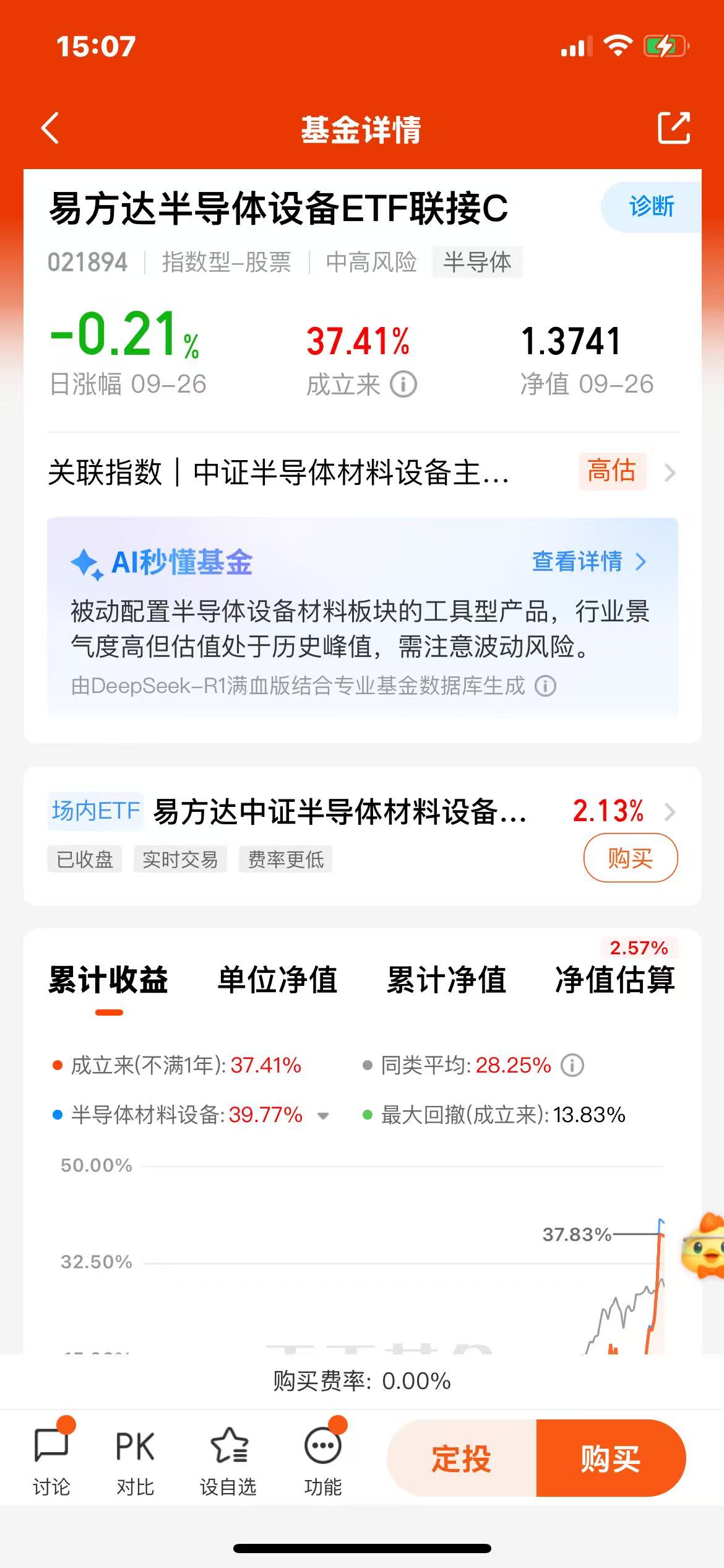 $易方达半导体设备ETF联接C(OTCFUND|021894)$半导体设备估值上涨近2.6%恭喜大家吃肉