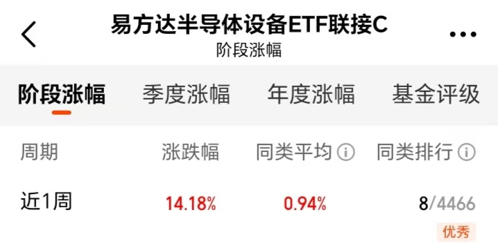 今天A 股市场午后三大股指持续拉升,半导体设备早间震荡,午后板块表现亮眼,这个板块近一周涨近15%,成芯片板块眼下最强主线了。$易方达半导体设备ETF联接C(OTCFUND|021894)$紧密跟踪半导体设备指数,精准布局这个赛道,受益于板块高景气,近一周上涨14.18%,业绩排名同类第8!叠加华为最新亮出昇腾芯片至 2028 年的路线图,2026 年起多型号量产将催生巨量的设备需求,相关设备企业订单大概率能大幅增长啦,半导体设备后续有望在业绩预期下继续催化新一轮行情,我也看好这个板块,今天先布局起来啦。