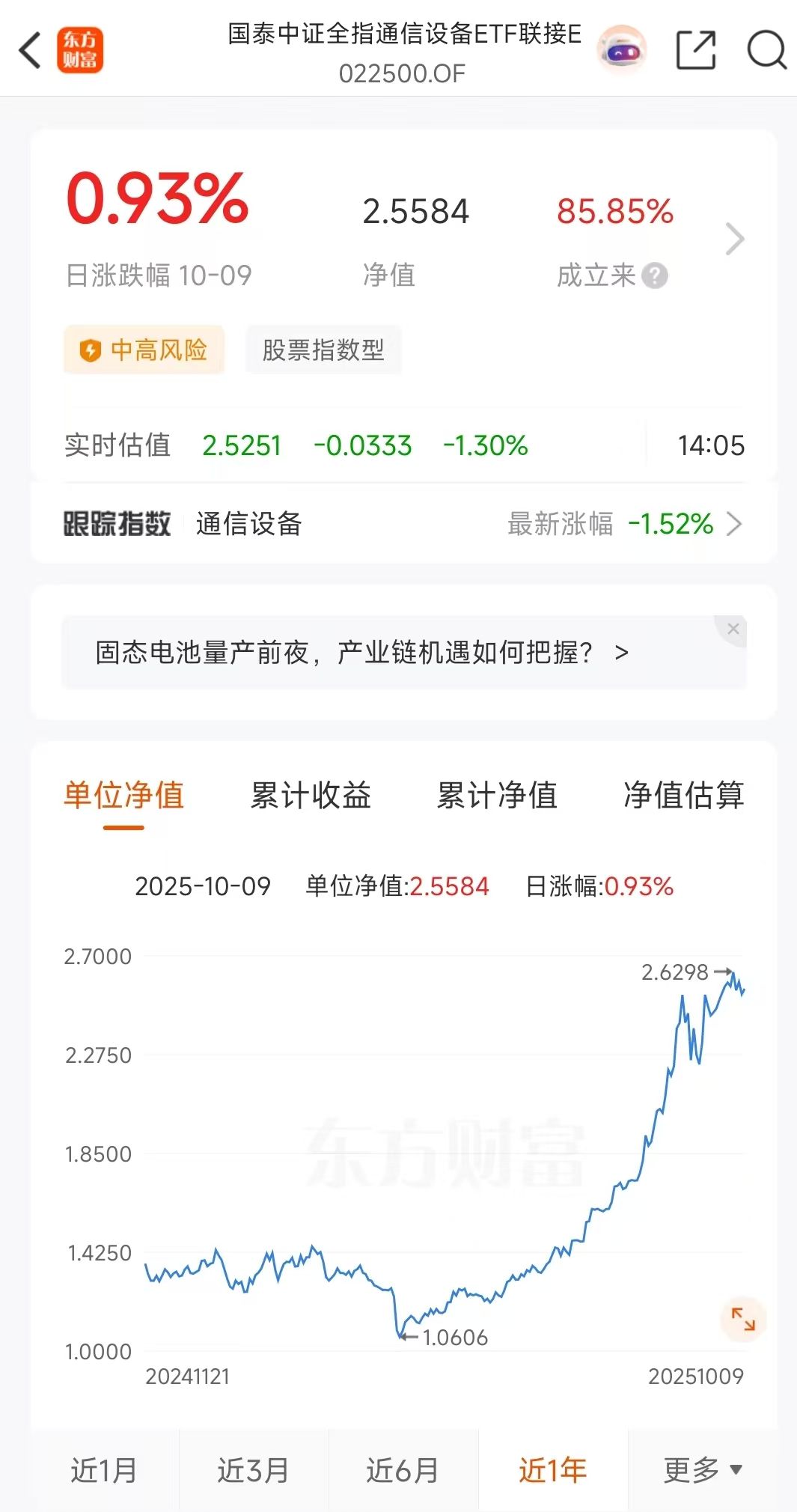 短期波动不改景气度,通信设备长期向好,通信设备上半年净利润1377亿元增长7.92%,光通信板块领涨,$国泰中证全指通信设备ETF联接E(022500)$捕捉核心标的。AI算力需求年增45%,政策催化不断,回调后估值进入合理区间,长期投资者可分批加仓。#指数操盘手集结令#