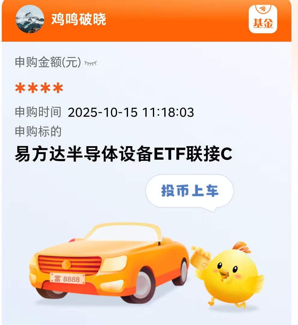 今天股市行情趋于平缓,半导体调整较多,低吸性价比更加突出了呢,最近闻泰科技被荷兰针对,黑天鹅事件导致半导体板块下跌,但是半导体芯片赛道弹性大,又有国家政策支持,事件过去之后很可能补涨的。我趁机加仓$易方达半导体设备ETF联接C(OTCFUND|021894)$